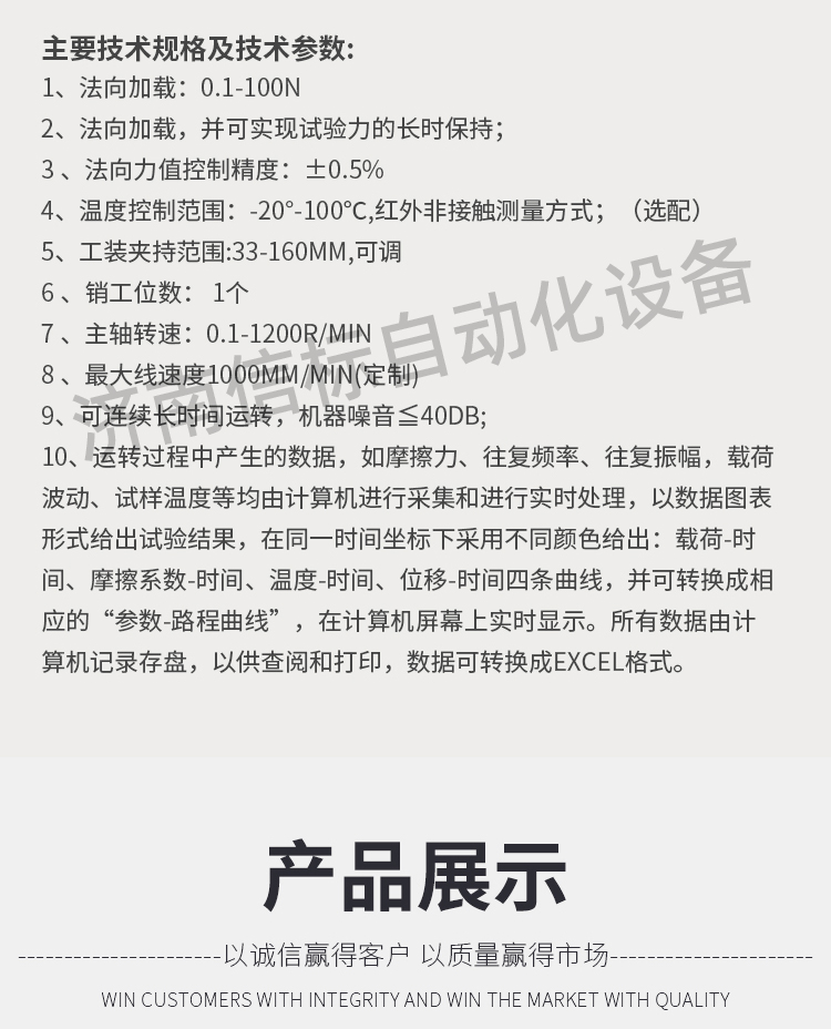濟南信標自動化設備有限公司主要生產:動靜態(tài)萬能疲勞試驗機,接骨板彎曲試驗機,縫合線拉伸疲勞試驗機,髖膝關節(jié)磨損試驗機,電子萬能試驗機、液壓萬能試驗機、巖石三軸、四軸,電液拉力試驗機,材料試驗機,高低溫蠕變,高低頻疲勞,拉伸、扭轉、杯突等二十多個系列兩千多個的品種。