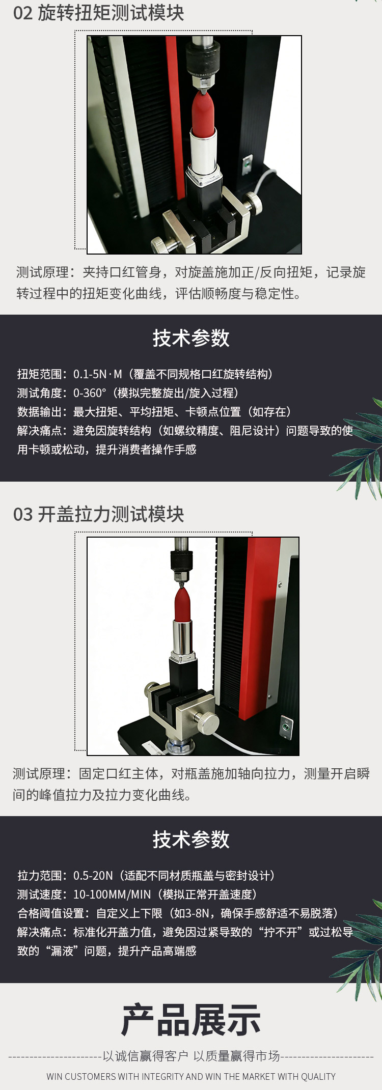 口紅綜合性能試驗(yàn)機(jī) 膏體抗斷測(cè)試 旋轉(zhuǎn)扭矩測(cè)試 開(kāi)蓋拉力測(cè)試