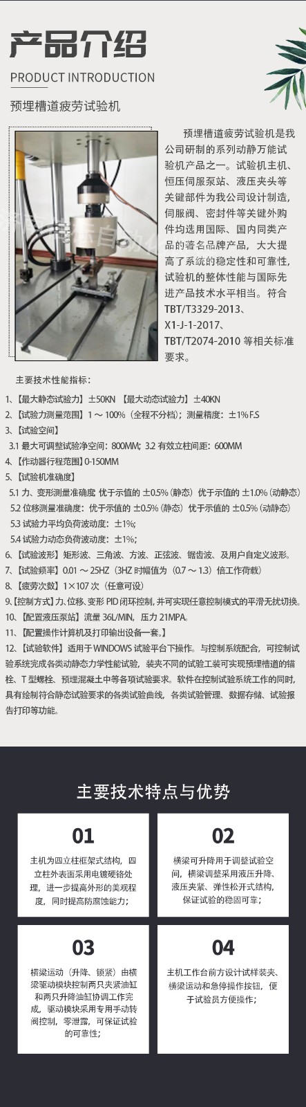 電液伺服接觸網(wǎng)預(yù)埋槽道疲勞壽命試驗機