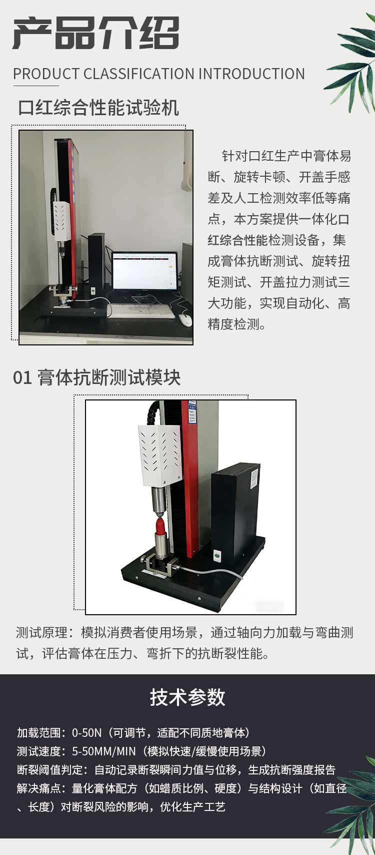 當前位置:首頁 > 解決方案 > 口紅綜合性能試驗機 膏體抗斷測試 旋轉扭矩測試 開蓋拉力測試