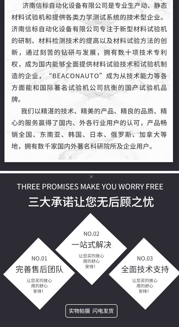 濟南信標自動化設備有限公司主要生產:動靜態萬能疲勞試驗機,接骨板彎曲試驗機,縫合線拉伸疲勞試驗機,髖膝關節磨損試驗機,電子萬能試驗機、液壓萬能試驗機、巖石三軸、四軸,電液拉力試驗機,材料試驗機,高低溫蠕變,高低頻疲勞,拉伸、扭轉、杯突等二十多個系列兩千多個的品種。