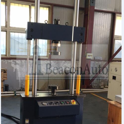 金屬纜線和纜索機械性能試驗機 產品特點: 1.主機:(輔助實驗夾具以客戶要求為準) 金屬纜線和纜索機械性能試驗機主機為雙立柱框架式結構, 伺服直線作動器下置于主機框架上部。夾頭分別安裝在橫梁和作動器活塞桿頂端。主機橫梁調整采用電動絲杠升降,傳動單元隱藏在橫梁內部,外觀整潔,主機下部工作臺為分體式,不需要刻意拆掉,整機防止在客戶Z定的臺面上。手動夾緊、彈性松開式結構,保證試驗過程中橫梁穩固可靠,同時保證在非試驗狀態時橫梁保持鎖止不動。立柱外表面采用電鍍硬鉻處理,可有效增加立柱抗磨損能力,提高防腐蝕能力,同時增加主機外形的美觀程度。 試驗機主機具有結構緊湊、橫梁升降自如、機架剛度高、試件夾持可靠、對中性好、裝夾方便等特點,并可配備各種夾具和環境試驗裝置以擴展試驗功能。 2、作動器: 2.1伺服直線作動器是試驗機的核心部件,試驗機通過作動器輸出試驗力。采用自有技術自行設計制造,作動器內置在主機上部,由作動器主體、伺服電機,伺服驅動器和傳感器組成。 2.2、伺服直線作動器振幅極限位置設計緩沖區,避免運行失控產生損傷。 2.3、伺服直線作動器位移傳感器內置于活塞桿內采用美國Schaevitz公司LVDT位移傳感器,運動靈活不受外來干擾,活塞桿采用超精加工,表面鍍絡拋光達Rα0.4u。 2.4、負荷傳感器與夾頭接螺桿處、推桿桿與夾頭處設計有專用消除間隙裝置,進一步提高動態響應性能。